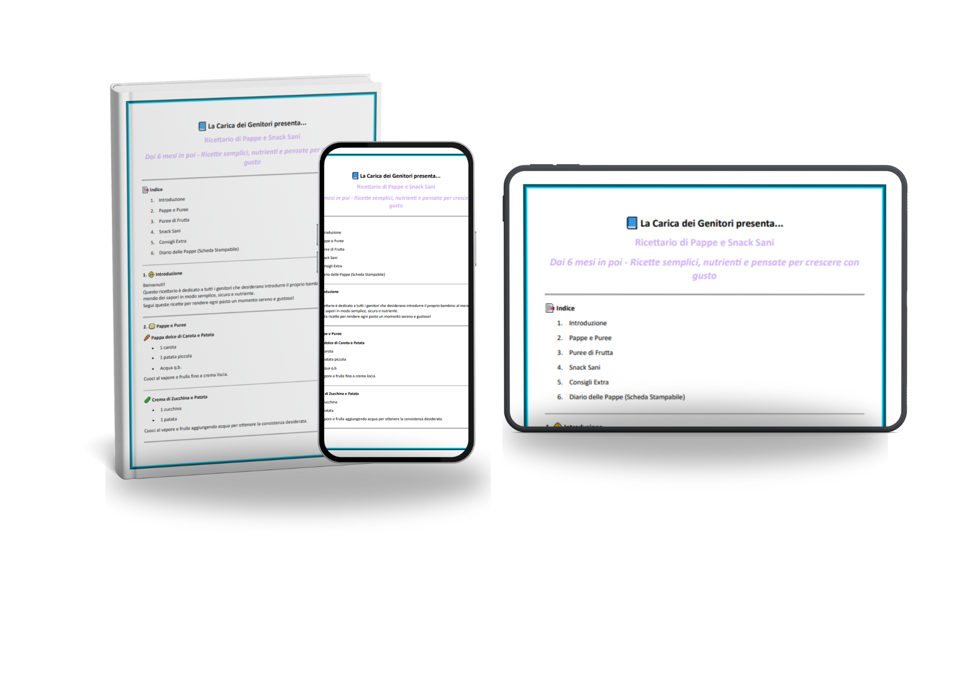 Ecco perché è nato "LA CARICA DEI GENITORI", il manuale pratico pensato per aiutarti a crescere tuo figlio in modo consapevole, sicuro e sereno, senza bisogno di correre dal pediatra per ogni dubbio.
